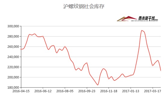 鋼鐵現(xiàn)貨交易平臺(tái)——西本新干線綜合庫存監(jiān)測數(shù)據(jù)顯示:3月24日滬市螺紋鋼庫存總量為21.2萬噸,較上期減少2.05萬噸;線材5.1萬噸,較上期減少1.4萬噸;盤螺4.5萬噸,較上期增加0.1萬噸。綜合來看,本期滬市建筑鋼材庫存總規(guī)模為30.8萬噸,較上期減少3.35萬噸。上周申城成交情況出貨情況先強(qiáng)后弱,整體出貨較清明節(jié)前有所好轉(zhuǎn),上周西本新干線監(jiān)測的滬線螺終端日均采購量環(huán)比回升35.21%。同時(shí)在鋼價(jià)下跌趨勢下,商家普遍減少備貨,以廠發(fā)資源為主,市場庫存量繼續(xù)下降。