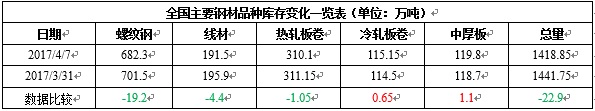 縱觀全國市場,本期全國35個(gè)主要市場螺紋鋼庫存量為682.3萬噸,減少19.2萬噸,降幅為2.74%;線材庫存量為191.5萬噸,減少4.4萬噸,降幅為2.25%。而從全國線材、螺紋鋼、熱軋板卷、冷軋板卷、中厚板五大品種庫存總量來看,本期全國綜合庫存總量為1418.85萬噸,較前一周減少22.9萬噸,降幅為1.59%。總體來看,本周全國鋼材市場庫存連續(xù)第七周出現(xiàn)下降,目前的庫存水平較去年同期增加34.37%。目前國內(nèi)建筑鋼材需求尚可,但板材需求持續(xù)低迷,使得國內(nèi)鋼材市場庫存在旺季消化速度不及預(yù)期,市場供應(yīng)壓力有所加大。
