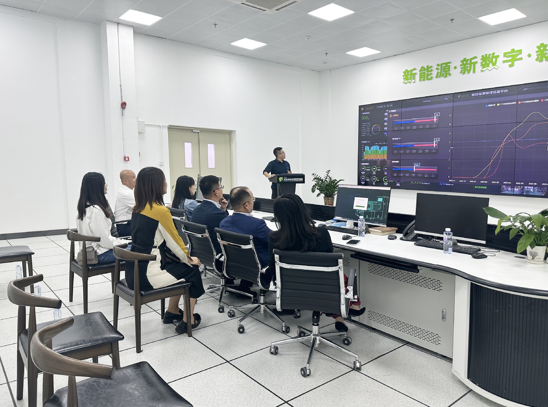 孫主任一行在公司眾領導的陪同下參觀了園區(qū)“富慧能”智慧綜合能源運維平臺、高低壓配電機房,雙方針對平臺管理的運維模式、節(jié)能降耗解決方案等進行深入交流。