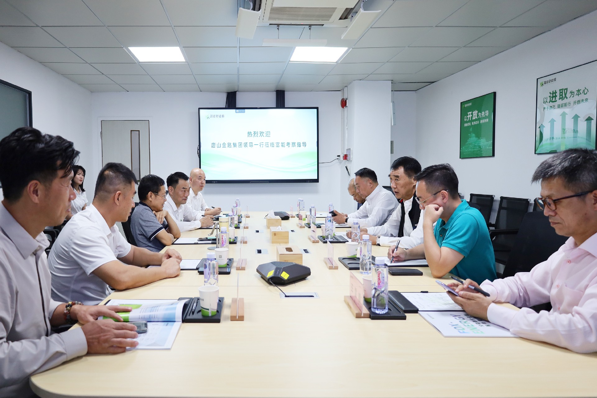 莊春源董事長對王董事長一行的到訪表示熱烈歡迎,他說到,在當前復(fù)雜的經(jīng)濟環(huán)境下,金匙集團作為唐山本土民營企業(yè)仍能保持強勁的發(fā)展勢頭,充分體現(xiàn)了王董事長的遠見卓識和實干精神。針對唐山作為重工業(yè)城市、特別是鋼鐵產(chǎn)業(yè)集聚的特點,莊董事長說到富能新能源“一站式能源托管”服務(wù)模式能有效解決傳統(tǒng)能源管理中存在的各種弊端,切實幫助客戶實現(xiàn)節(jié)能降耗與降本增效的雙重目標,后續(xù)雙方保持緊密聯(lián)系,深度對接,加快推進具體項目落地,雙方將共同致力于打造京津冀地區(qū)工業(yè)領(lǐng)域能源托管的標桿示范項目,為傳統(tǒng)工業(yè)城市綠色轉(zhuǎn)型提供可復(fù)制、可推廣的成功經(jīng)驗。