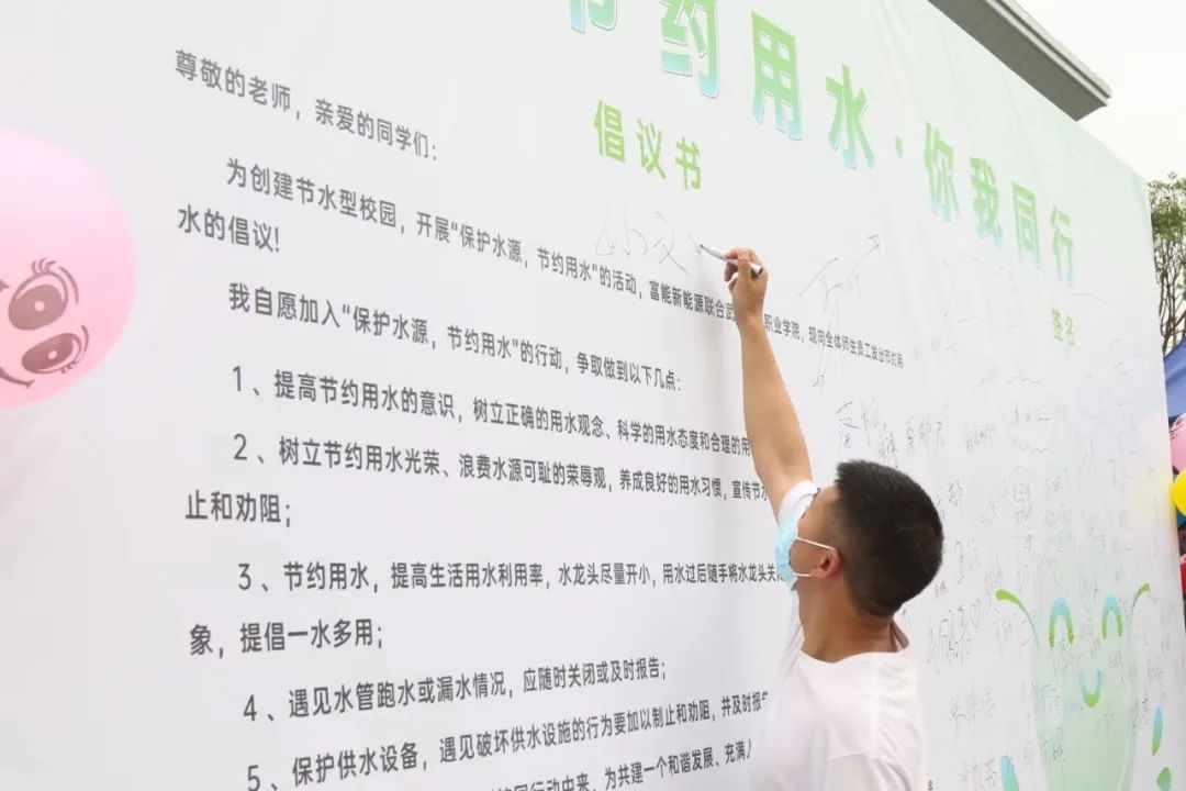 活動(dòng)最后,現(xiàn)場的老師、同學(xué)們相繼在富能倡議節(jié)水節(jié)能的倡議書上留下濃重的一筆。