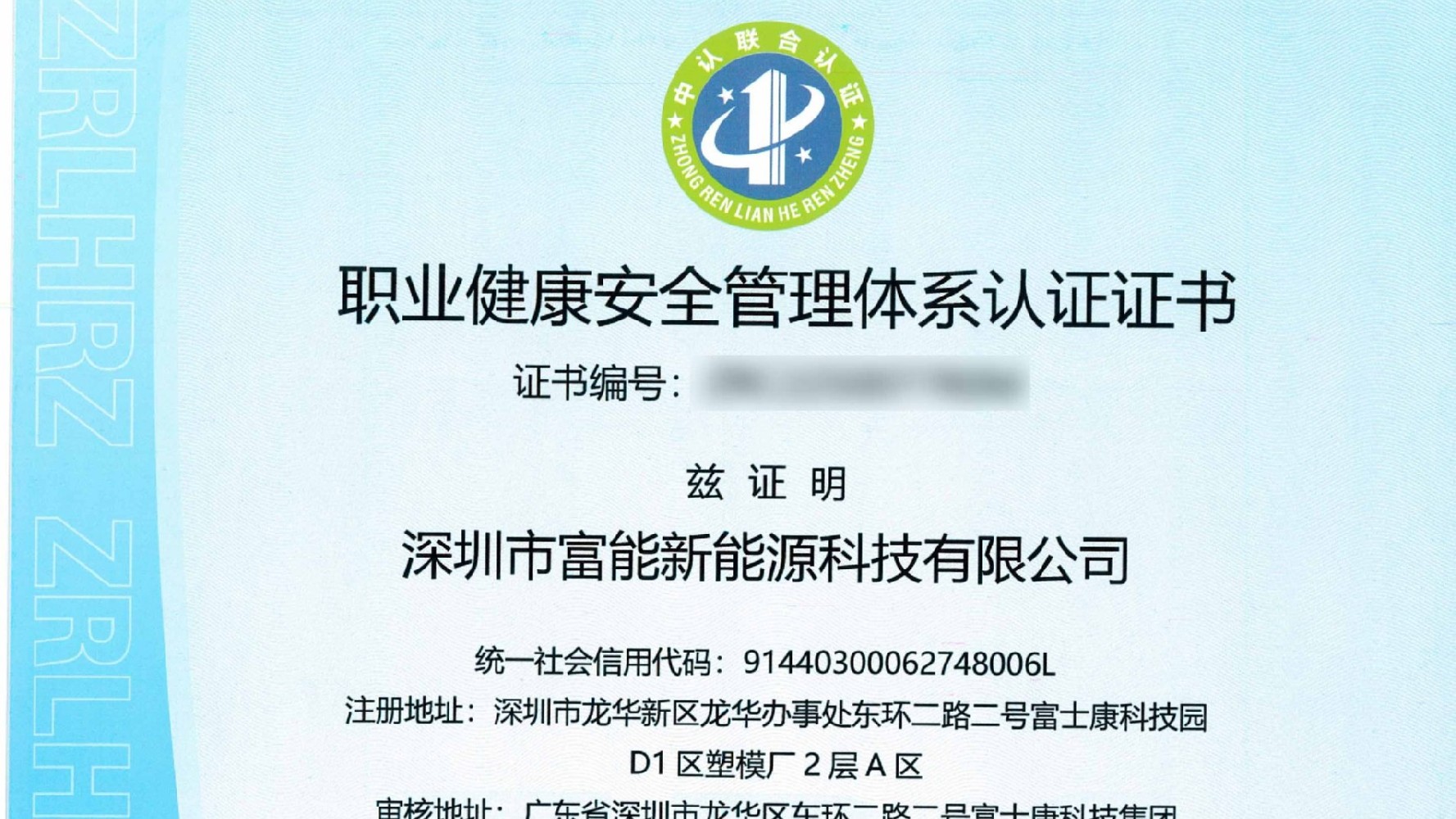 榮譽 | 服務升級,富能新能源榮獲職業(yè)健康安全管理體系認證證書