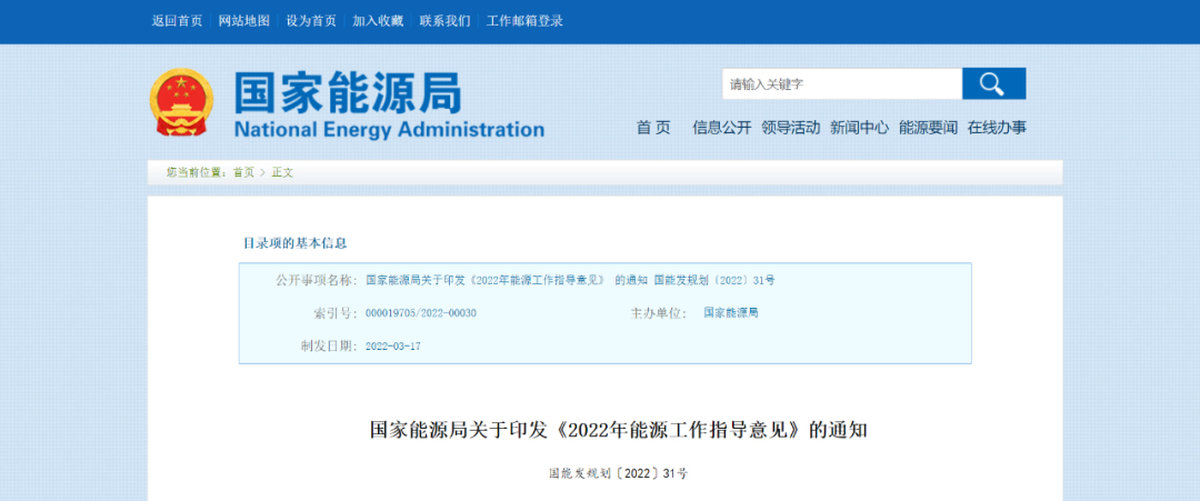 國家能源局關(guān)于印發(fā)《2022年能源工作指導(dǎo)意見》的通知