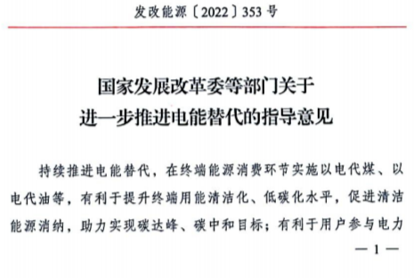 3月9日,國家發(fā)展改革委、國家能源局、工業(yè)和信息化部、財(cái)政部、生態(tài)環(huán)境部、住房城鄉(xiāng)建設(shè)部、交通運(yùn)輸部、農(nóng)業(yè)農(nóng)村部、國家機(jī)關(guān)事務(wù)管理局、中國民用航空局等10部門聯(lián)合印發(fā)《關(guān)于進(jìn)一步推進(jìn)電能替代的指導(dǎo)意見》。