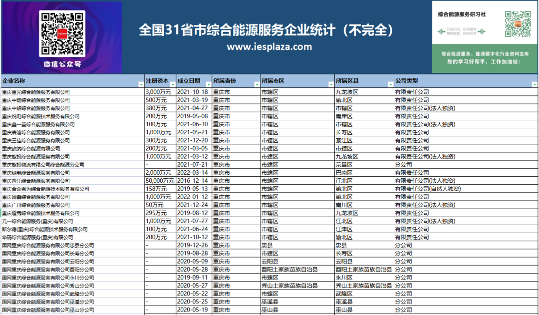 全國31省市綜合能源服務(wù)企業(yè)統(tǒng)計(jì),共1418家