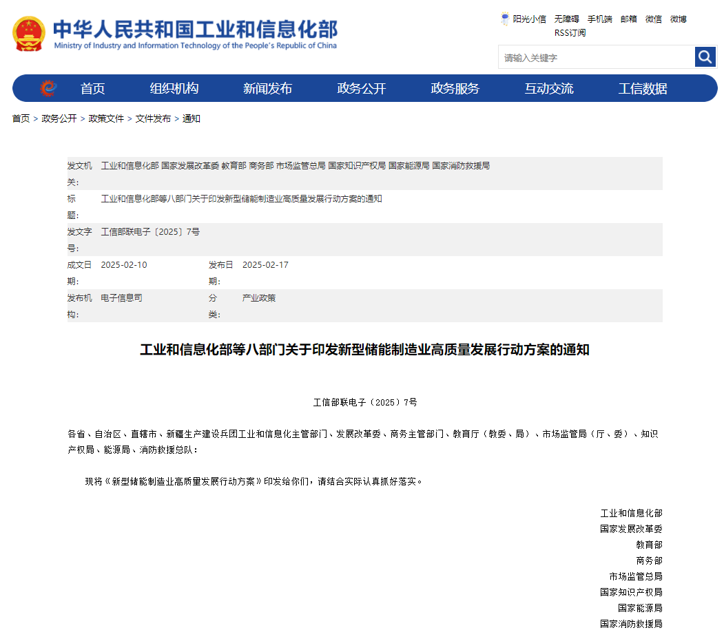 國家發(fā)改委、工信部等八部門:印發(fā)《新型儲能制造業(yè)高質(zhì)量發(fā)展行動方案》