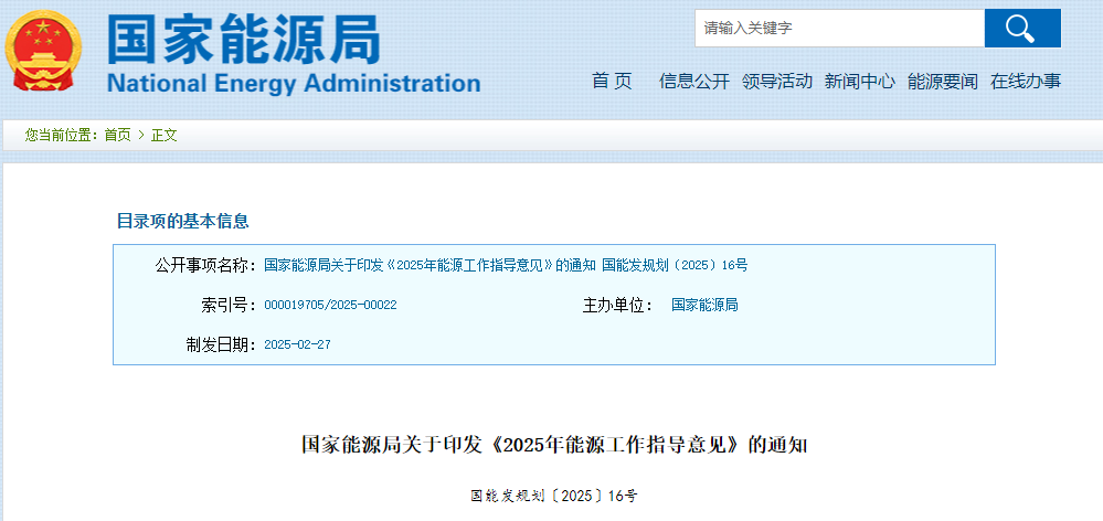 國家能源局印發(fā)《2025年能源工作指導(dǎo)意見》的通知